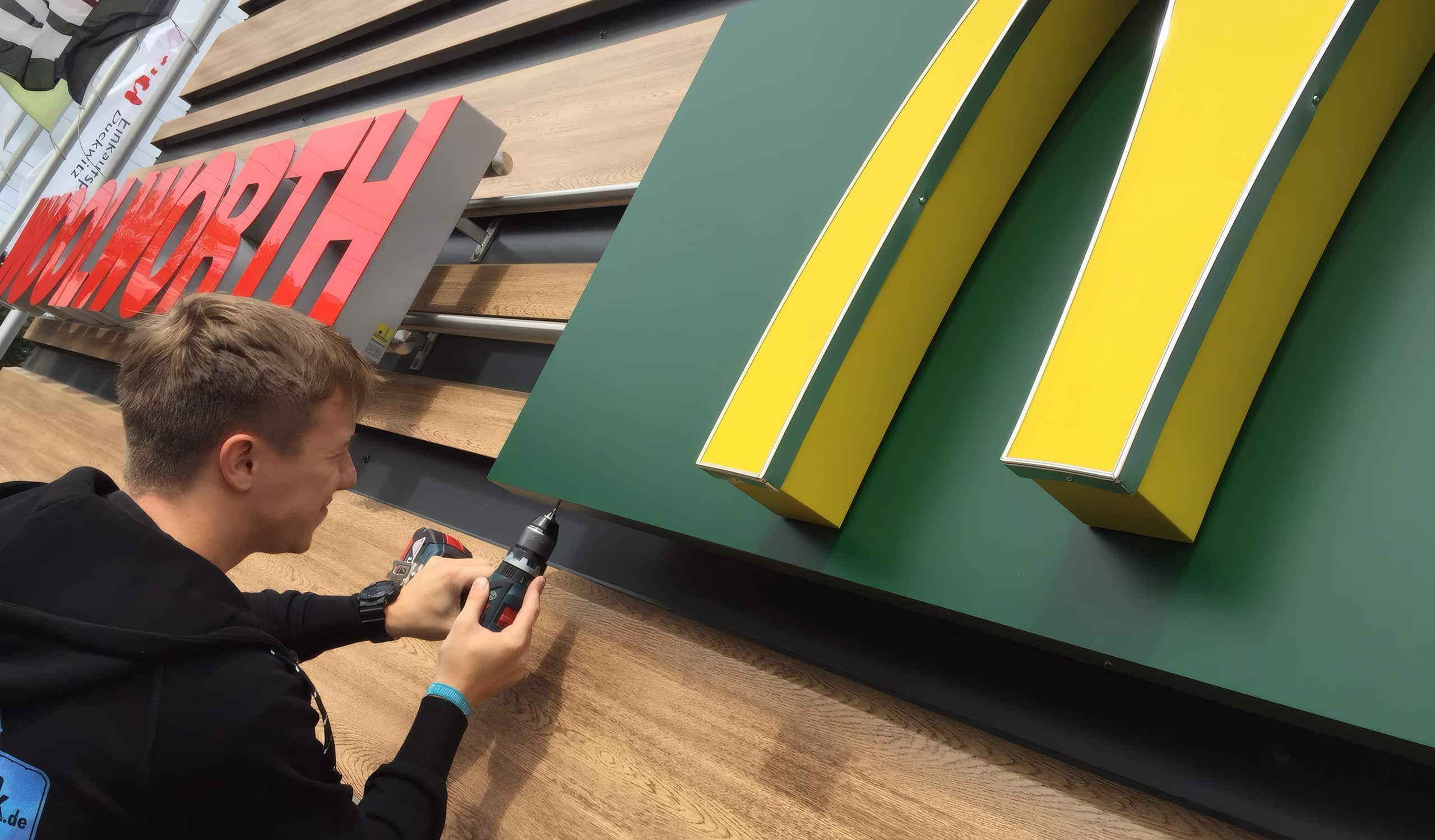 Jeder Höhenjob wird sorgfältig geplant, entsprechend den aktuellen Anforderungen risikobewertet und fachgerecht ausgeführt, wodurch die Langlebigkeit Ihrer Werbeanlagen gesichert ist. Dank unserer zugelassenen und versicherten Lösungen, die ohne Sondergenehmigung und mit einem Führerschein der Klasse B bedient werden, sind wir in der Lage, auch kurzfristige Projekte flexibel und termingerecht zu realisieren.